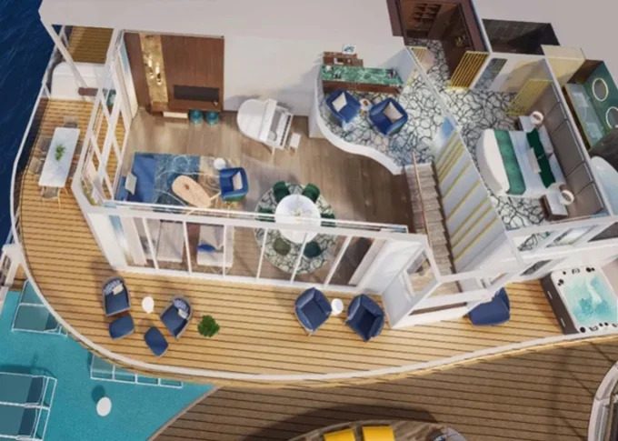 | OS - Owner’s Suite 61 m² + 17,5 m² balkón s výhľadom na more. 16,17. paluba vpredu. Max 5 osôb. Výhody Royal Suite Sky class. | 18 192 € 4 548 € za osobu | ||