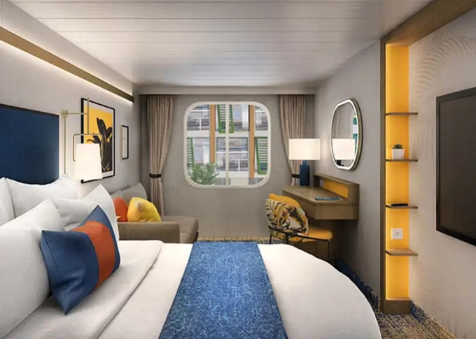 | T5 - Vnútorná kajuta s oknom / Surfside Family 17 m². Neotvárateľné okno s výhľadom na štvrť Surfside. 8. paluba vpredu. Max 4 osoby. | 3 411 € 3 411 € za osobu | ||