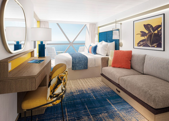 | I3 - Kajuta Infinite Ocean View 23 m² (vrátane 4,5 m² verandy Infinite s výhľadom na more). 9,10,11. paluba. Max 4 osoby. | 5 996 € 1 499 € za osobu | ||