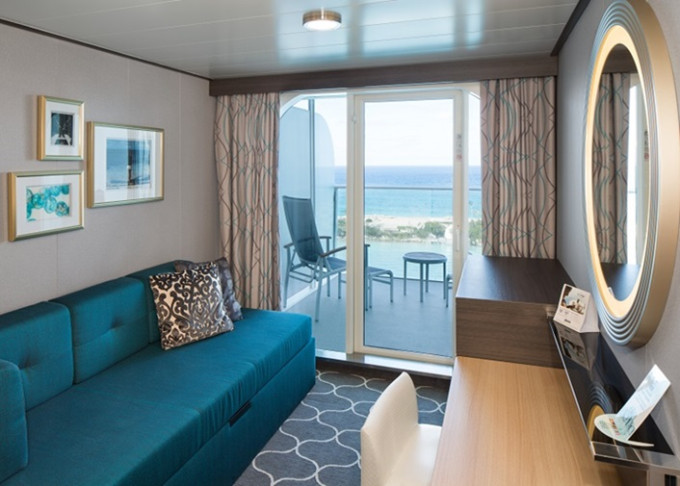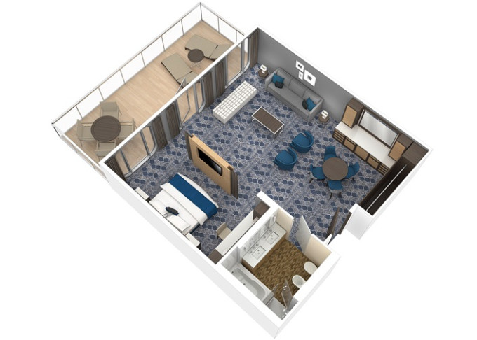 J3 - Junior Suite s balkónom 26,5 m² + balkón 7,5 m². Max 4-5 osôb. Výhody Royal Suite Sky Class. 5 105 € 5 105 € za osobu